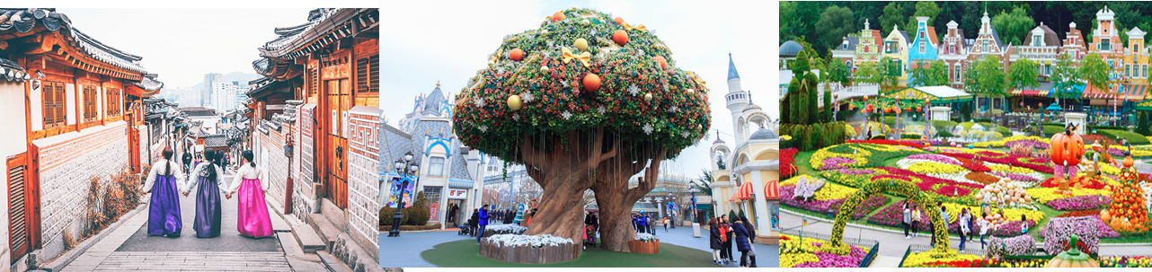 Khám Phá Mùa Thu - Mùa Đẹp Nhất Của Đất Nước Hàn Quốc.Đảo Nami – Phim Trường Của “Bản Tình Ca Mùa Đông” Nổi Tiếng. Thoả Sức Vui Chơi Tại Everland – Top 5 Công Viên Lớn Nhất Thế Giới.Làng Cổ Nam San Hanok - Ngôi Làng Cổ Đẹp Nhất Tại Thủ Đô Seoul.Khám Phá Thư Viện Khổng Lồ Starfield. Trải Nghiệm Lớp Học Kim Chi & Mặc Đồ Hanbok.Thưởng Thức Đầy Đủ Các Món Ẩm Thực Truyền Thống Của Hàn Quốc: Gà Hầm Sâm, Buffet thịt nướng, Cá thu Nướng, Gà Nướng, Canh sườn bò. Thoả Thích Mua Sắm Tại Các Trung Tâm Thương Mại Lớn nhất Hàn Quốc
